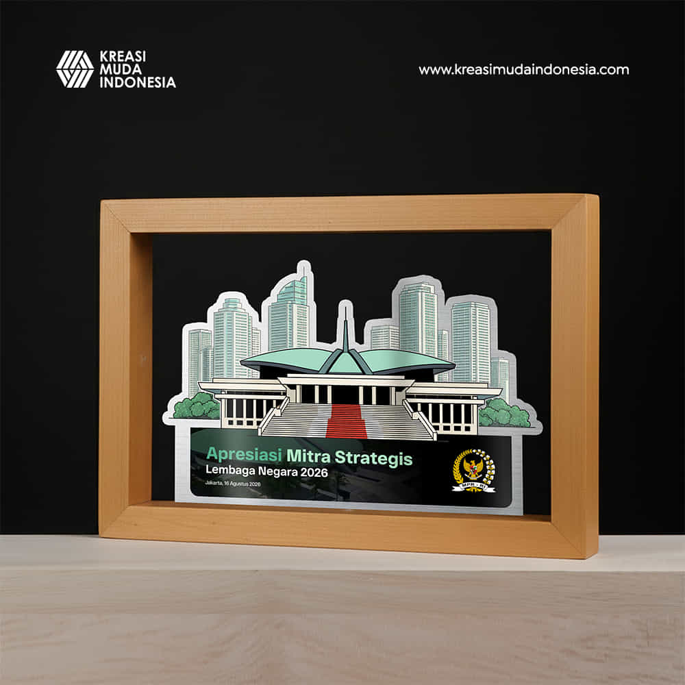 Government Building Miniature. Elegant teak wood & stainless design, perfect for institutional awards & official souvenirs. Free design. Order now!