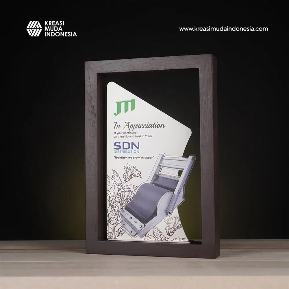 Plakat Apresiasi Partnership JTI merupakan simbol penghargaan resmi yang diberikan sebagai bentuk apresiasi atas kolaborasi strategis, kontribusi, dan hubungan kemitraan yang telah terjalin dengan baik bersama Japan Tobacco International. Plakat ini dirancang untuk mencerminkan nilai profesionalisme, komitmen, serta penghormatan terhadap mitra kerja yang berperan dalam mendukung keberhasilan dan keberlanjutan organisasi, sehingga sangat tepat digunakan sebagai bentuk penghargaan yang bernilai tinggi dan penuh makna.