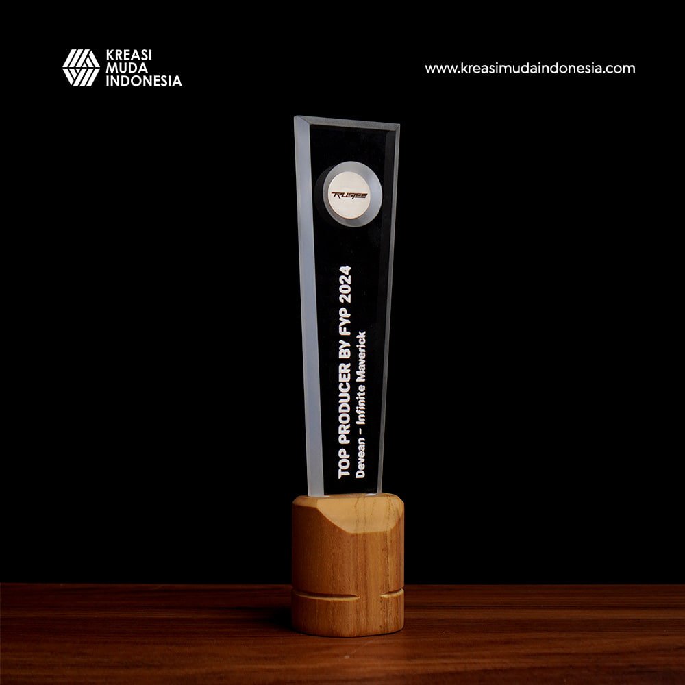 The Acrylic Trustee Appreciation Plaque is a work dedicated to the best talents. This plaque has several categories such as Top Producer by FYP which was won by Devean and Top Leader SBP 2024 which was presented to Yenni Kurniawan Hariwinarto. This plaque is adapted from the Short Cylindrical Vandel Acrylic model which is made of two main materials, namely teak wood and acrylic.